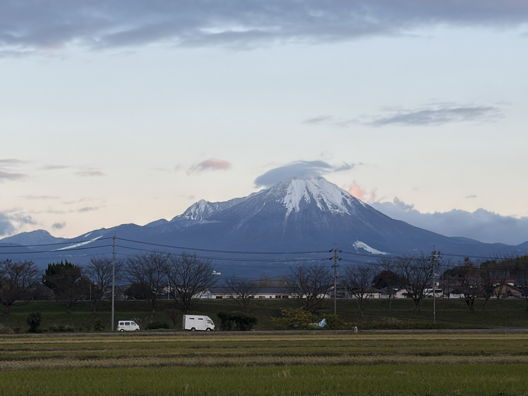日記今日は大山が見える学校。雪が積もってる。冬だなぁ。