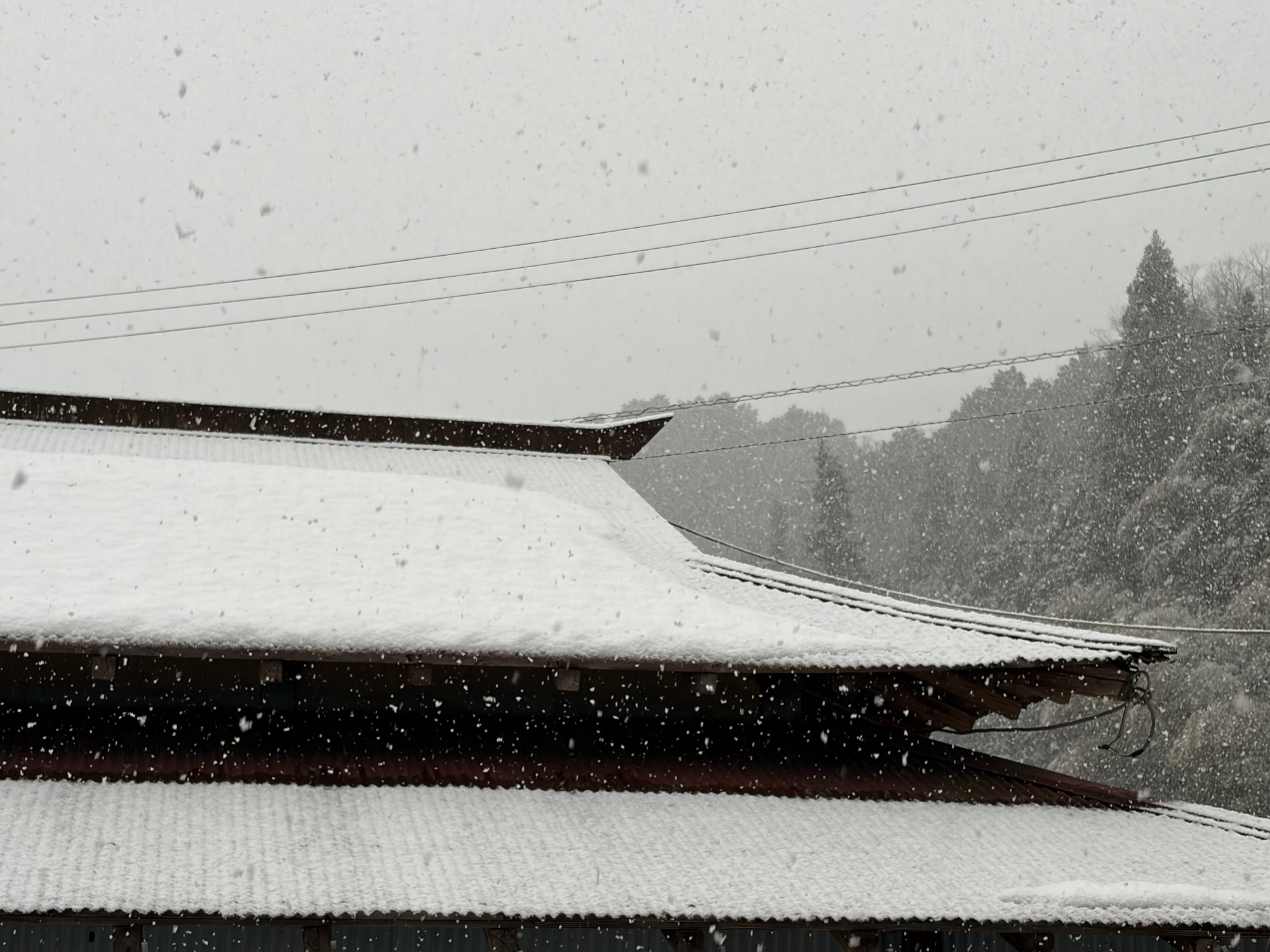 夕方になったら雪が降り出した。明日の朝どこまで積もってるのか?