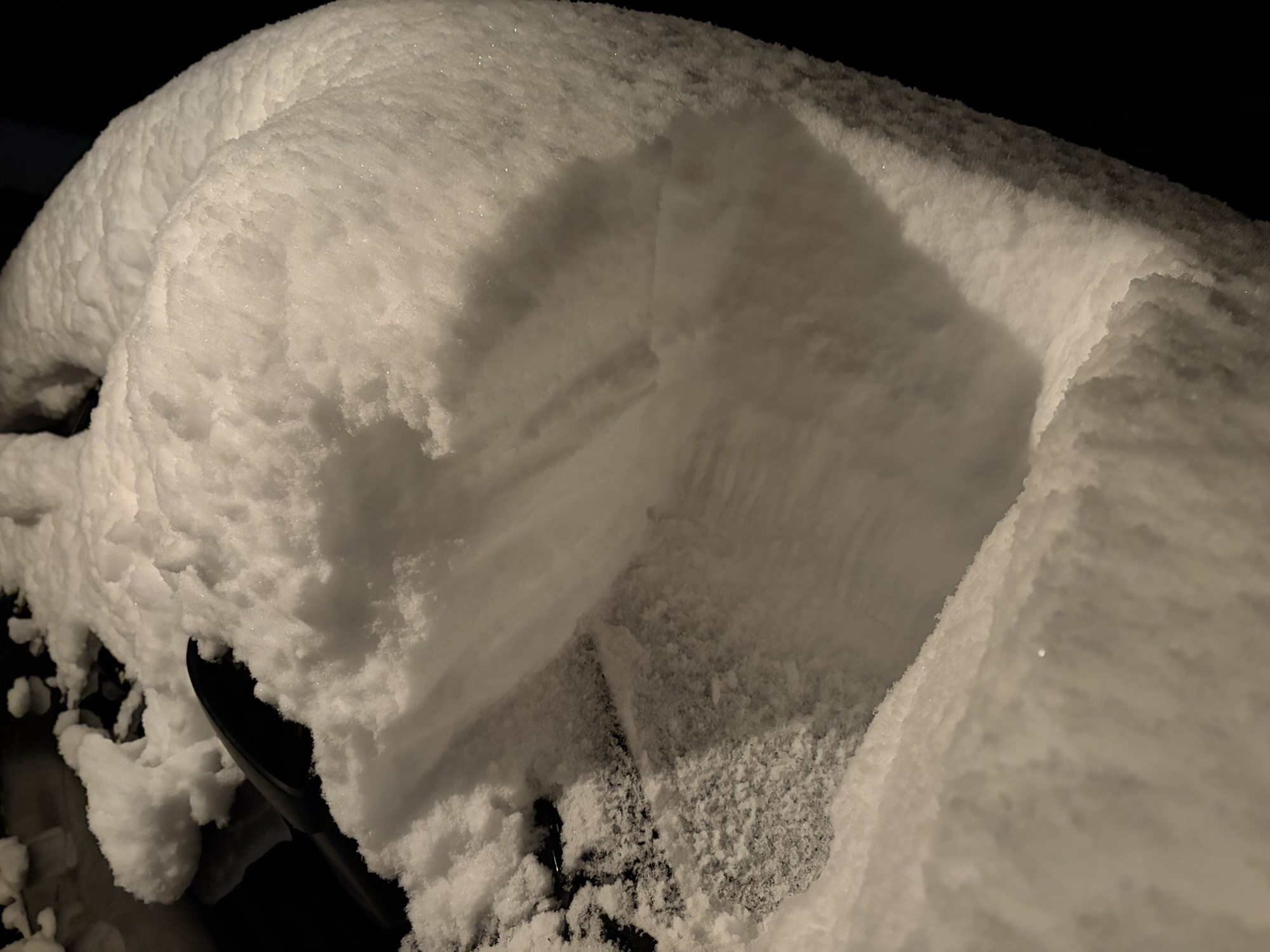 真っ暗な中雪かき。終わるころには明るくなってた。