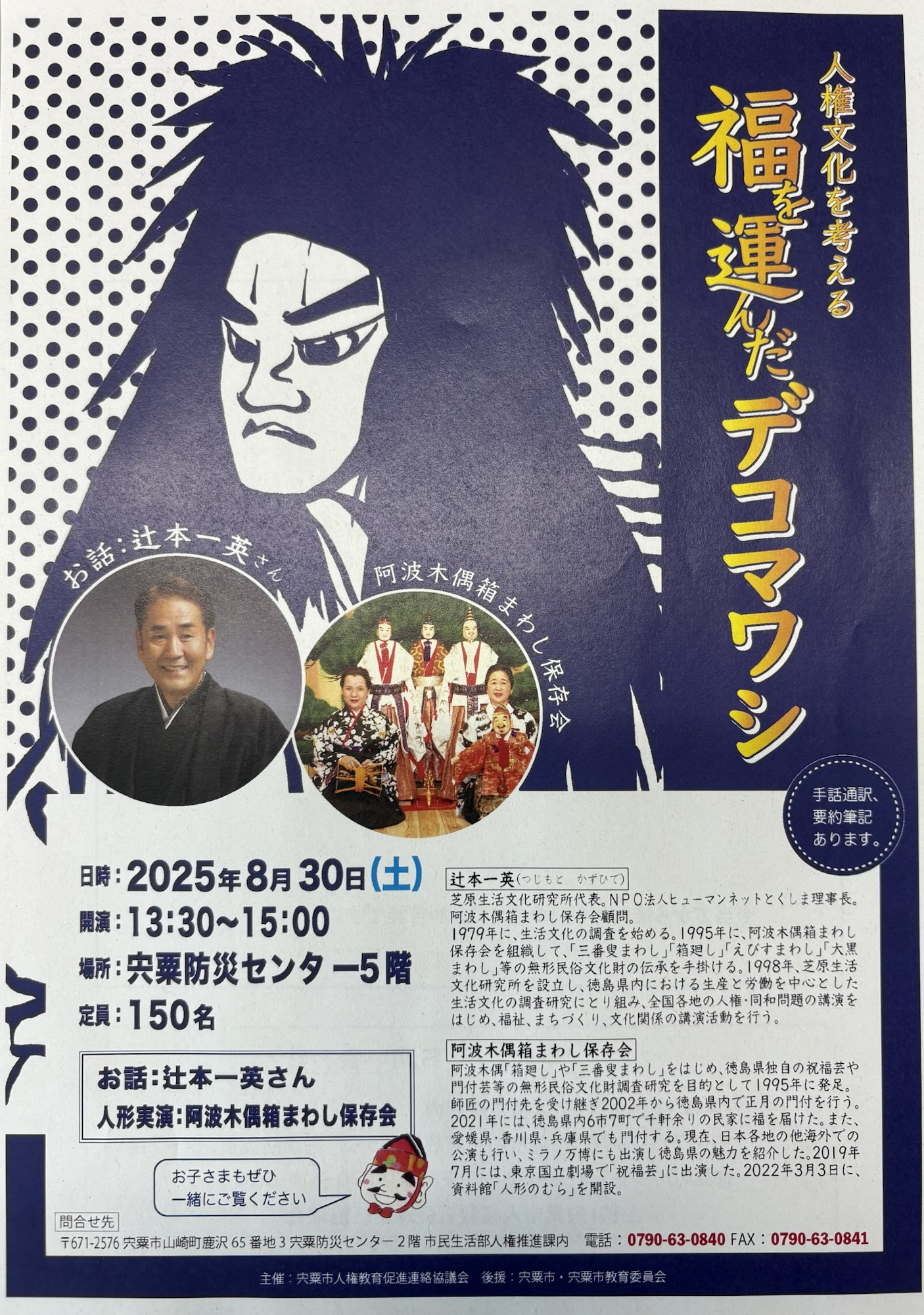日記もうすぐデコまわしです。徳島の阿波木偶箱まわし保存会の方々の実演があります。